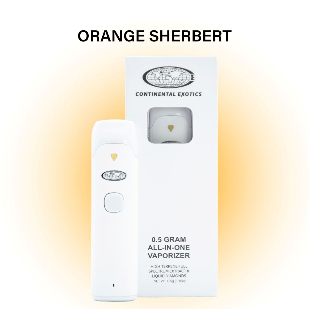 The Continental Exotics 0.5 Gram All-In-One Vaporizer contains strain-specific Live Resin and Liquid Diamonds. No artificial botanical or cannabis-derived terpenes are added, ensuring an authentic true-to-strain flavor profile. The vaporizer features a 3-Step Adjustable Voltage, Pre-Heating, and a metal-free stemless Ceramic Heating Element.