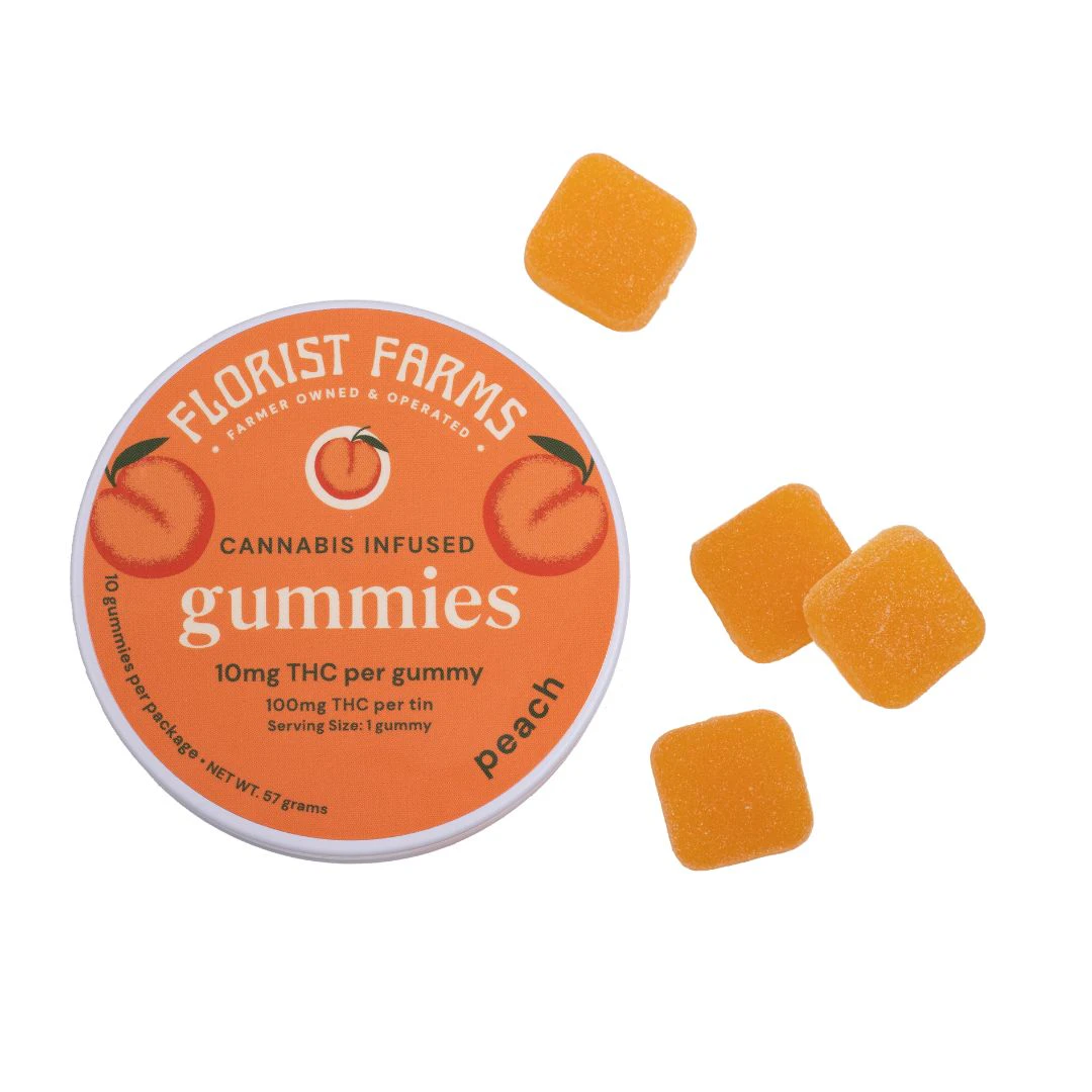 10 pieces x 10mg THC/gummy = 100mg THC/tin|NY’s finest hybrid cannabis extract measured and dosed with precision for a reliable experience that hits the sweet spot between relaxed and energized. These peach gummies will take you on a trip to nostalgia-ville when the peach ring flavor hits your mouth.|