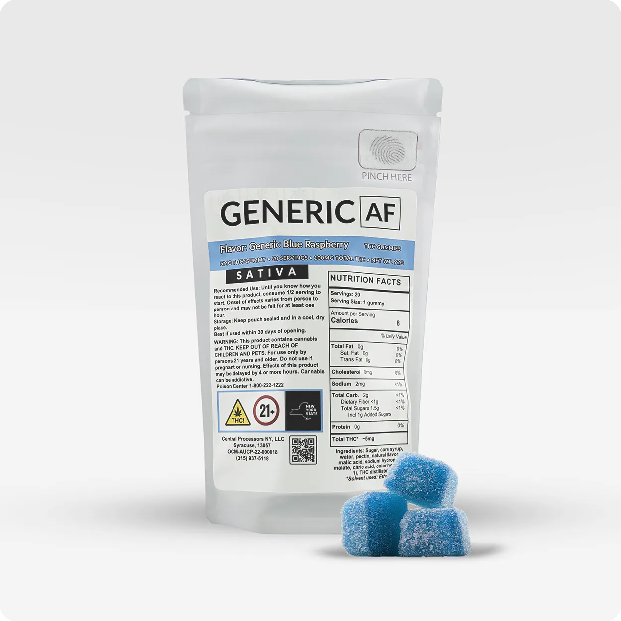 Generic AF - Blue Raspberry - Generic Gummies - 20CT - 100MG - Sativa - Edible Gummies