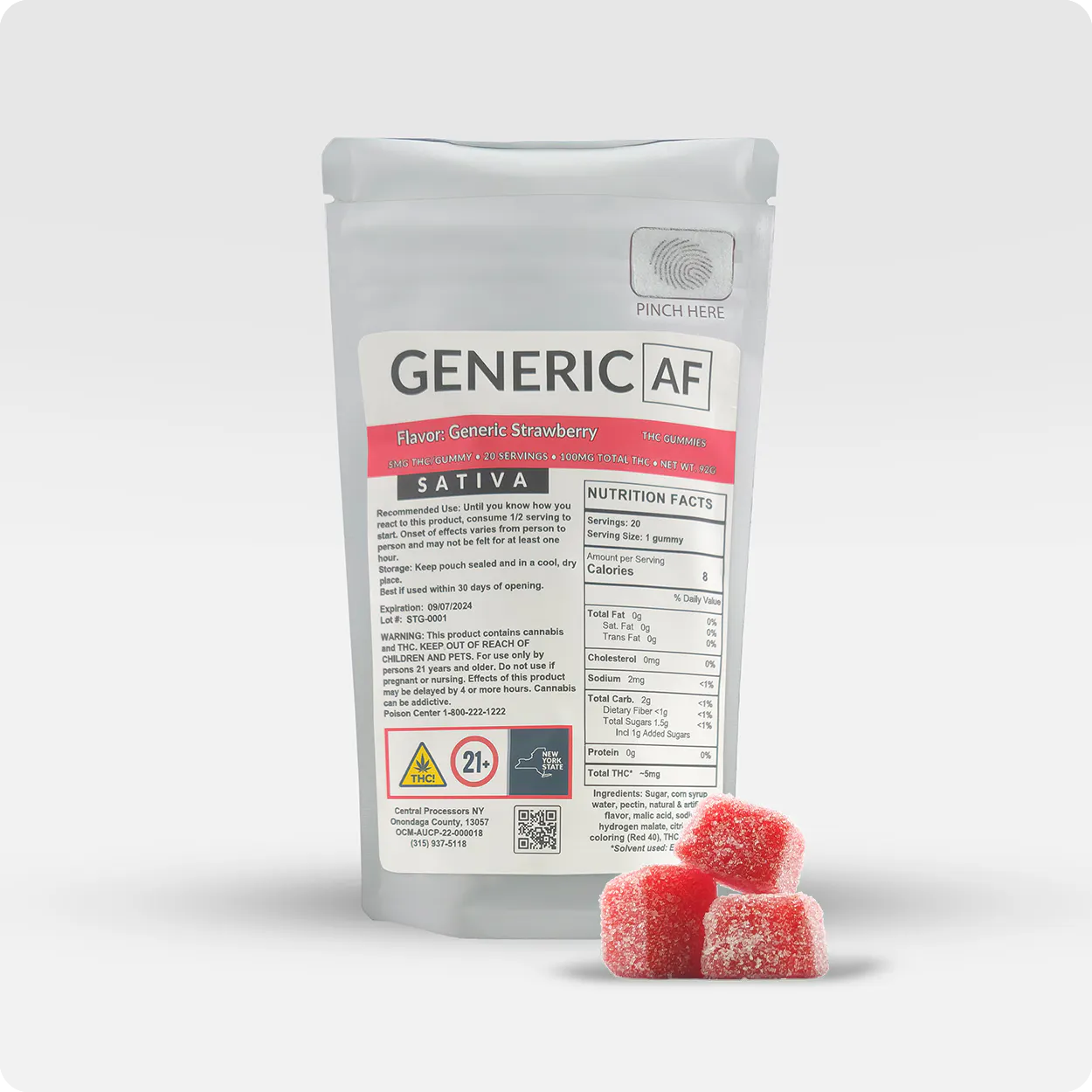 Generic AF - Strawberry - Generic Gummies - 20CT - 100MG - Sativa - Edible Gumies