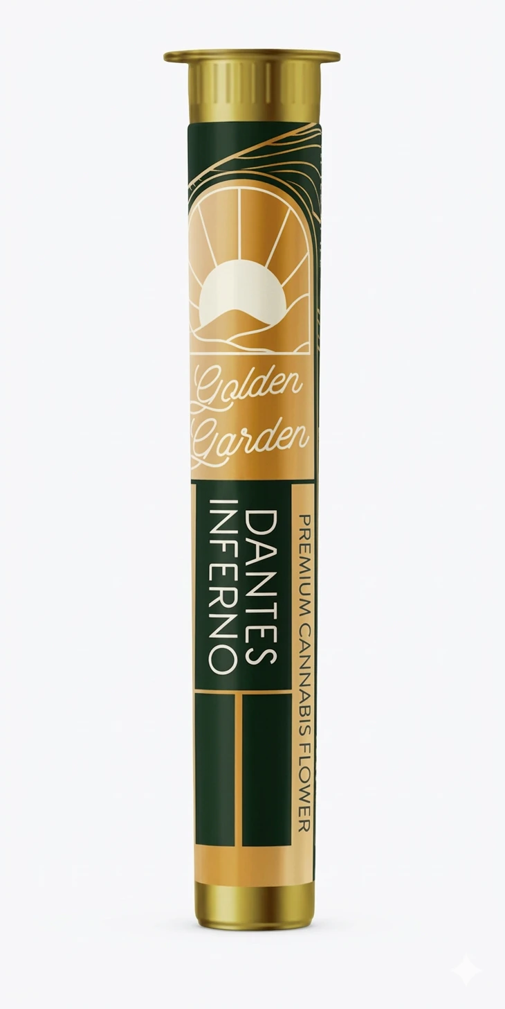 Dante’s Inferno is an evenly balanced hybrid strain (50% indica/50% sativa). True to its name, Dante’s Inferno delivers a slow-building, blazing high that pulls you deeper with each hit, igniting the mind with creative euphoria before melting the body into warm, hazy relaxation. It’s a favorite for those seeking a trip through the flames (without ever leaving the couch).