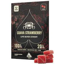 "Heavy Hitter’s Guava Strawberry gummies are a delectable rosin-infused treat that combines the tropical flavors of guava and ripe strawberries. Offering a delicious fusion of sweet and tangy notes that dance on your taste buds. Each bite-sized delight contains the uplifting effects of a sativa, providing a boost of creativity, focus, and mental clarity. Indulge in the irresistible taste and uplifting effects of the Guava Strawberry Sativa Rosin Edible for a refreshing and invigorating experience.