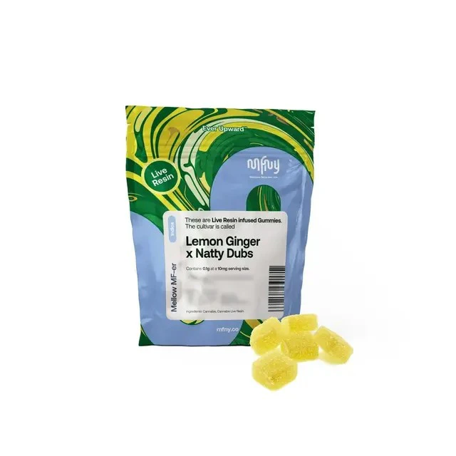 Terpene-rich edibles at an even tastier price. Introducing our live resin Lemon Ginger x Natty Dubs gummies. These vegan gummies are infused with MFNY’s single-source, in-house produced Natty Dubs live resin. We start with fresh-frozen flower buds, then use the hydrocarbon extraction method (plus years of experience and scientific precision) to deliver the purest plant extract. An extract that showcases the cultivar's naturally-produced, full-spectrum cannabinoids and remarkable natural terpenes. Natty Dubs is known for its notes of termafirma and gasoline. To complement the Natty Dubs cultivar, we add the minimum amount of sugar and lemon ginger flavors.
