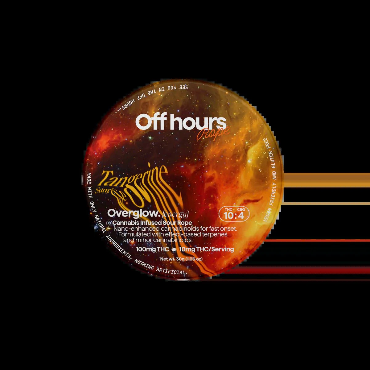 Off Hours Tangerine Sunrise Overglow ropes are the perfect pick me up throughout your day. Specially formulated with an energizing blend of THC and CBG for a happy, uplifting high.