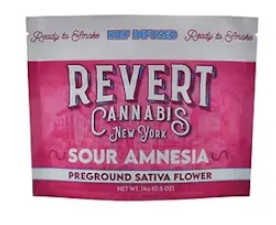 Sour Amnesia has an aroma very much like its name suggests – sharp sour earth with a hint of citrusy diesel that's released when it's smoked. The taste is of earthy floral diesel with a sharply sour aftertaste that intensifies upon exhale. The Sour Amnesia high is said to be very serene in nature with just a touch of short-term memory loss.
