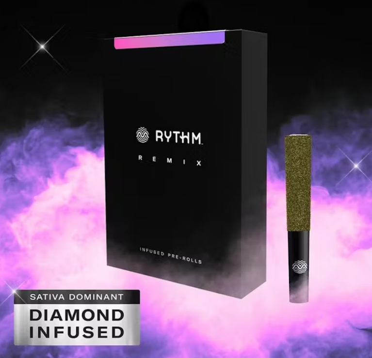 A sativa-dominant strain with a complex palette of sweet, earthy, piney flavors, Durban Poison is known to keep energy sparked. Remix pre-rolls feature RYTHM premium indoor flower, double infused with THCa diamonds and kief for maximum potency and fine-tuned with 100% natural terpenes.