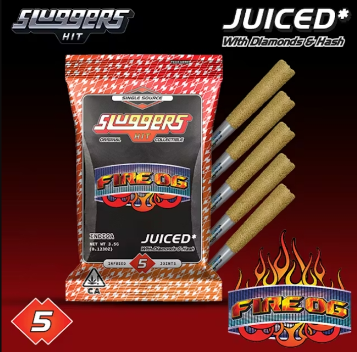 Get fiery with this 5-pack of Fire OG, which includes premium flower, solventless hash, liquid diamonds, and is rolled in kief. It offers a gassy, earthy taste with a hint of acidic finish.